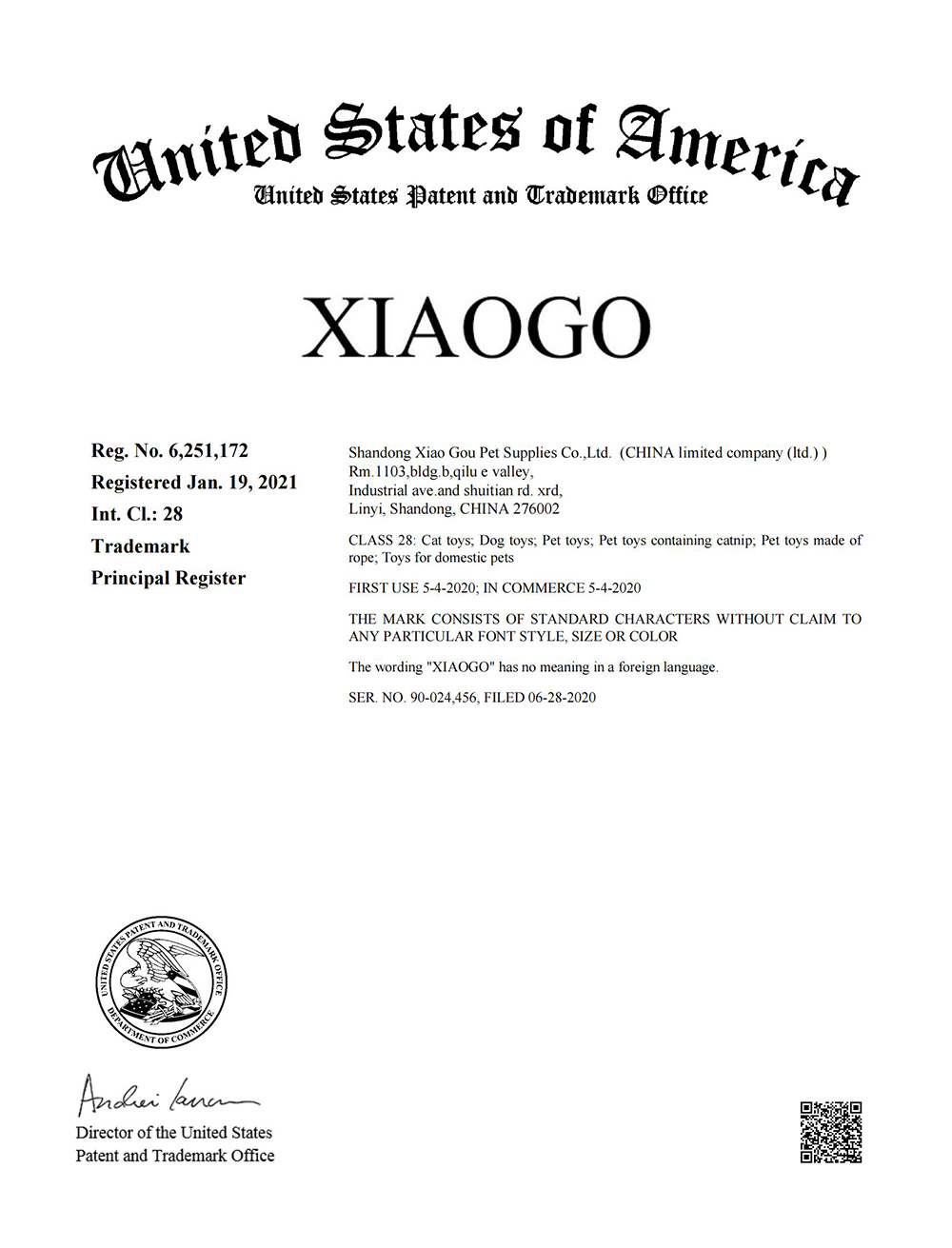 创新是我们流淌在血液中的基因,知识产权是我们的核心竞争力。目前,我们在全球范围内取得了显著成就,在中国、美国、欧盟、日本等主要市场共计拥有700余项自主知识产权和专利。每件产品都凝结了我们对创新的执着与对品质的承诺。山东小狗宠物用品有限公司不仅是玩具的制造商,更是宠物快乐的守护者和创造者。