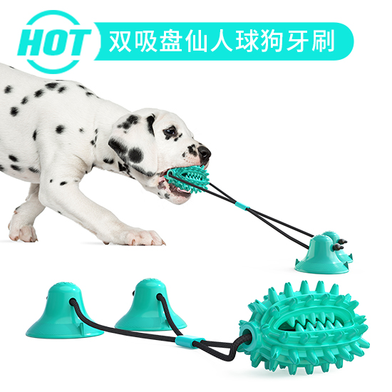 宠物用品工厂公司厂家批发新款爆款亚马逊跨境电商外贸狗狗玩具双吸盘拉绳磨牙仙人球